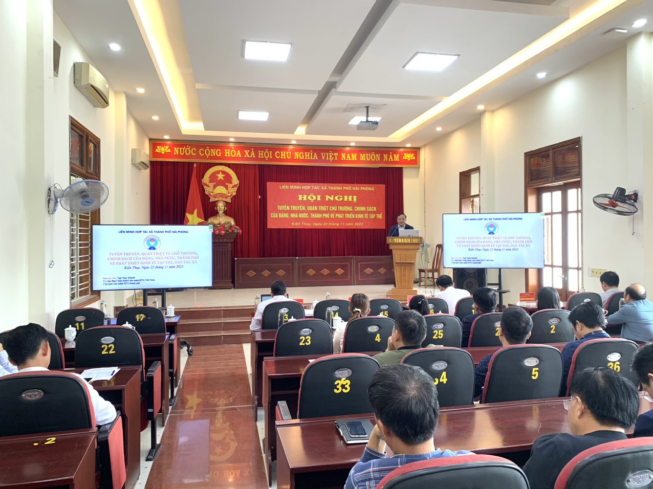 Ngày 22/11/2023, tại huyện Kiến Thụy. Liên minh HTX thành phố tổ chức Hội nghị tuyên truyền, quán triệt chủ trương, chính sách của Đảng, Nhà nước, thành phố về phát triển kinh tế tập thể cho cán bộ Cấp ủy, chính quyền địa phương và các HTX trên địa bàn huyện Kiến Thụy. Dự … Đọc tiếp
