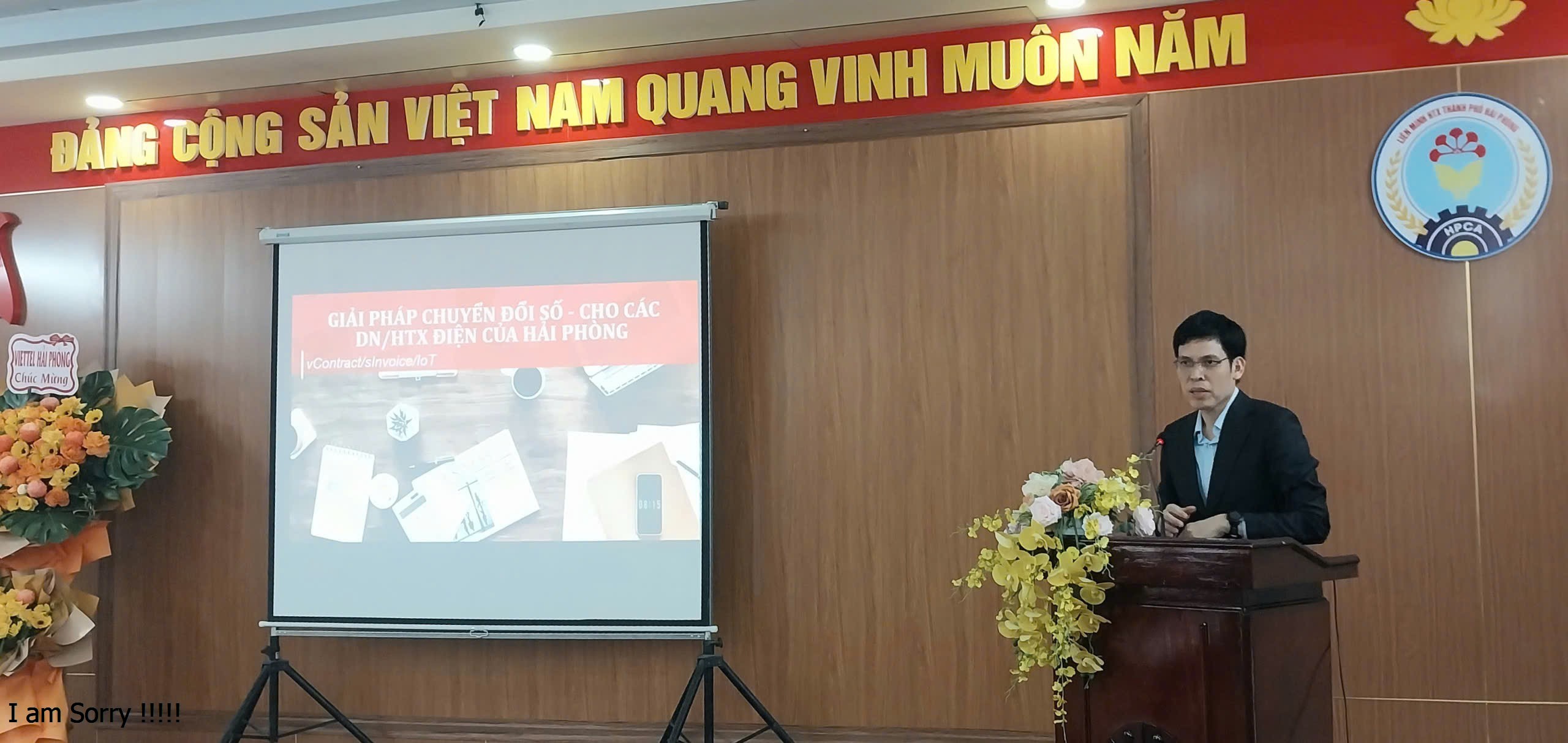 Ông Trần Văn Thắng – Phó Giám đốc Viettel Hải Phòng trình bày Giải pháp chuyển đổi số cho các DN/HTX điện của Hải Phòng