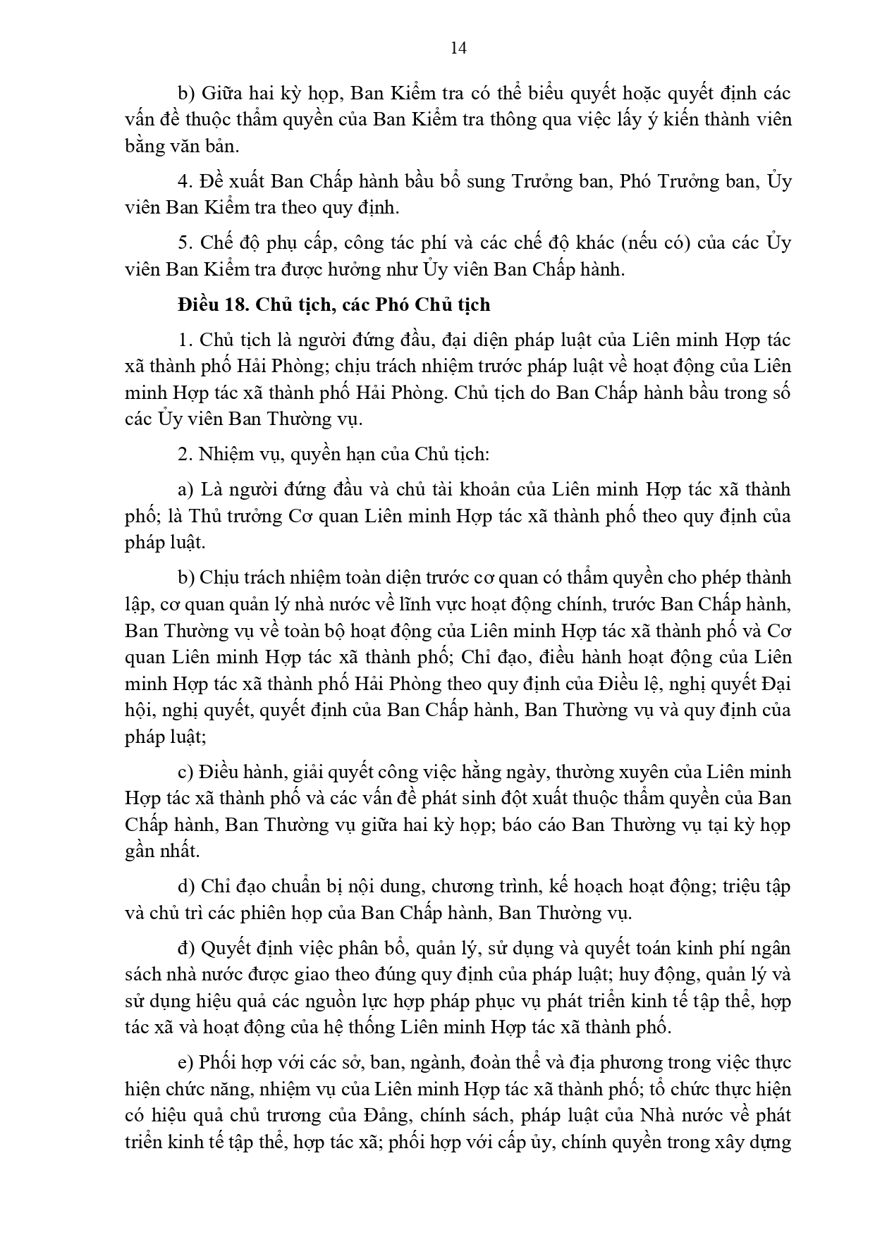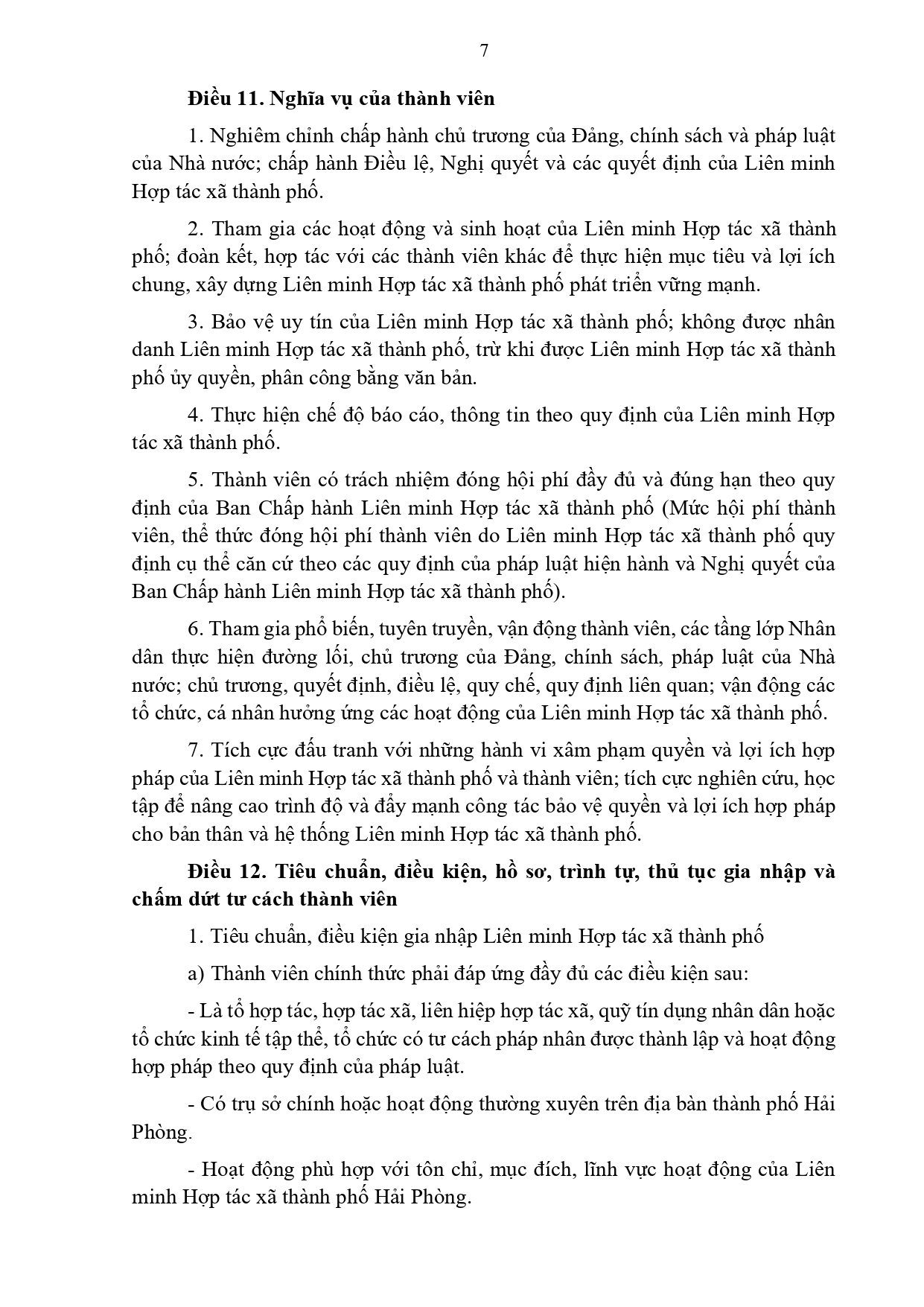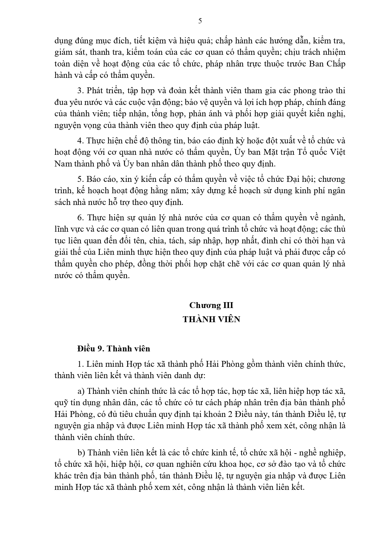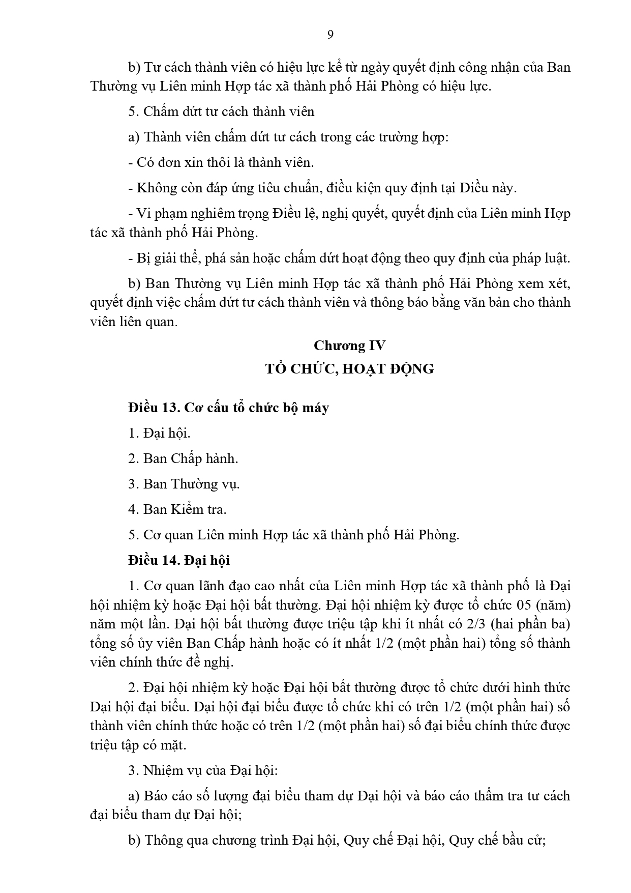 Điều lệ Liên minh Hợp tác xã thành phố Hải Phòng