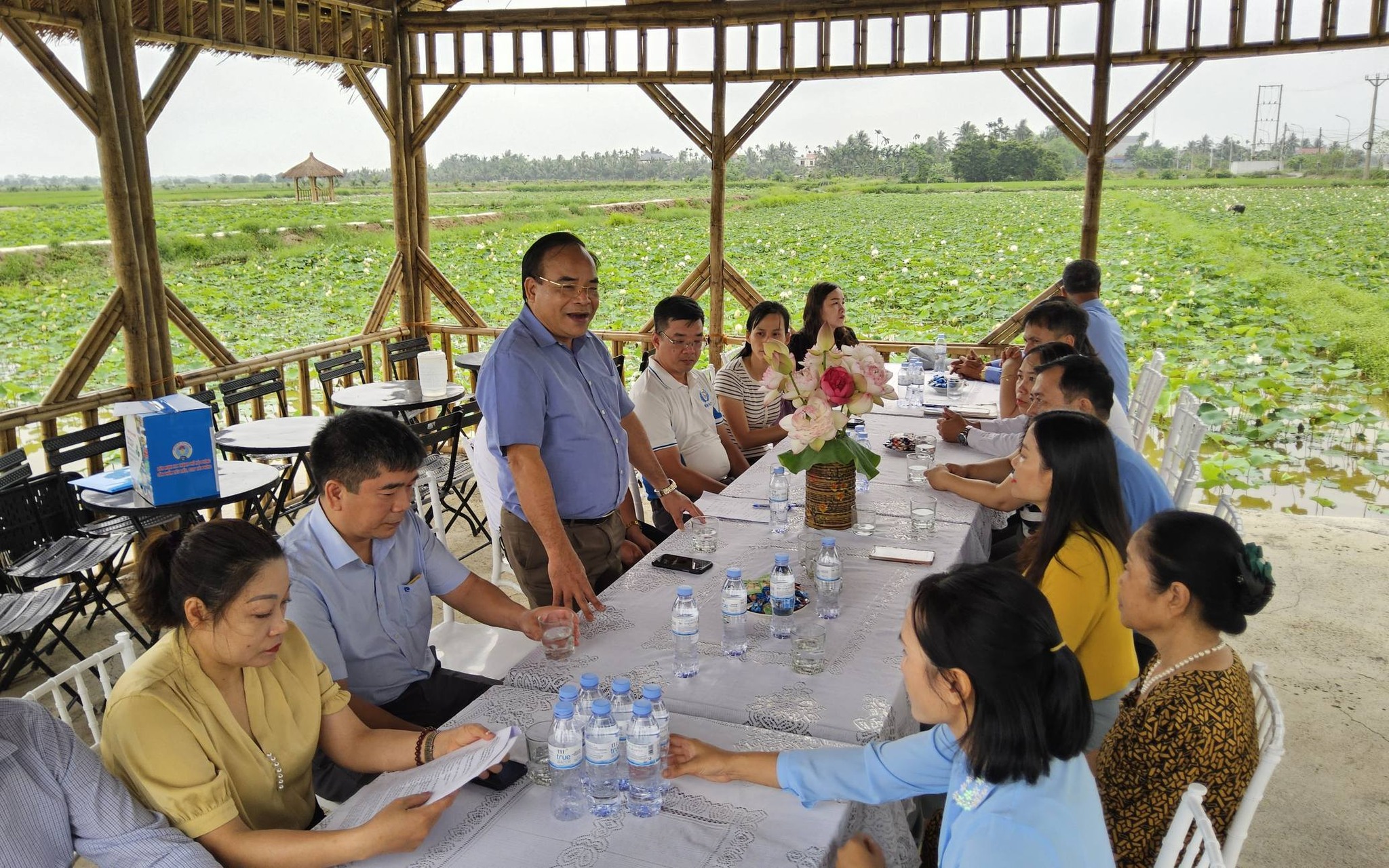 Đoàn công tác do đồng chí Ngô Ngọc Khánh – Chủ tịch Liên minh HTX thành phố làm Trưởng đoàn, cùng đồng chí Nguyễn Minh Hoàng – Phó Chủ tịch và lãnh đạo các phòng, ban đã trực tiếp đến làm việc tại HTX SXKD DVNN Vĩnh Tiên (xã Vĩnh Thịnh), HTX Nông nghiệp Xanh Tiến Phát (xã Vĩnh Bảo), HTX Nông nghiệp Tân Hoàng Long (xã An Phú) và HTX DV Nông nghiệp Thái Hòa (xã Thượng Hồng). Tham gia tiếp và làm việc với Đoàn tại các địa phương có đại diện cấp ủy, chính quyền như đồng chí Phạm Ngọc Điệp – Phó Chủ tịch UBND xã Vĩnh Thịnh; đồng chí Bùi Thị Lý – Phó Bí thư Thường trực Đảng ủy xã Vĩnh Bảo; đồng chí Dương Văn An – Chủ tịch Ủy ban MTTQ xã An Phú.